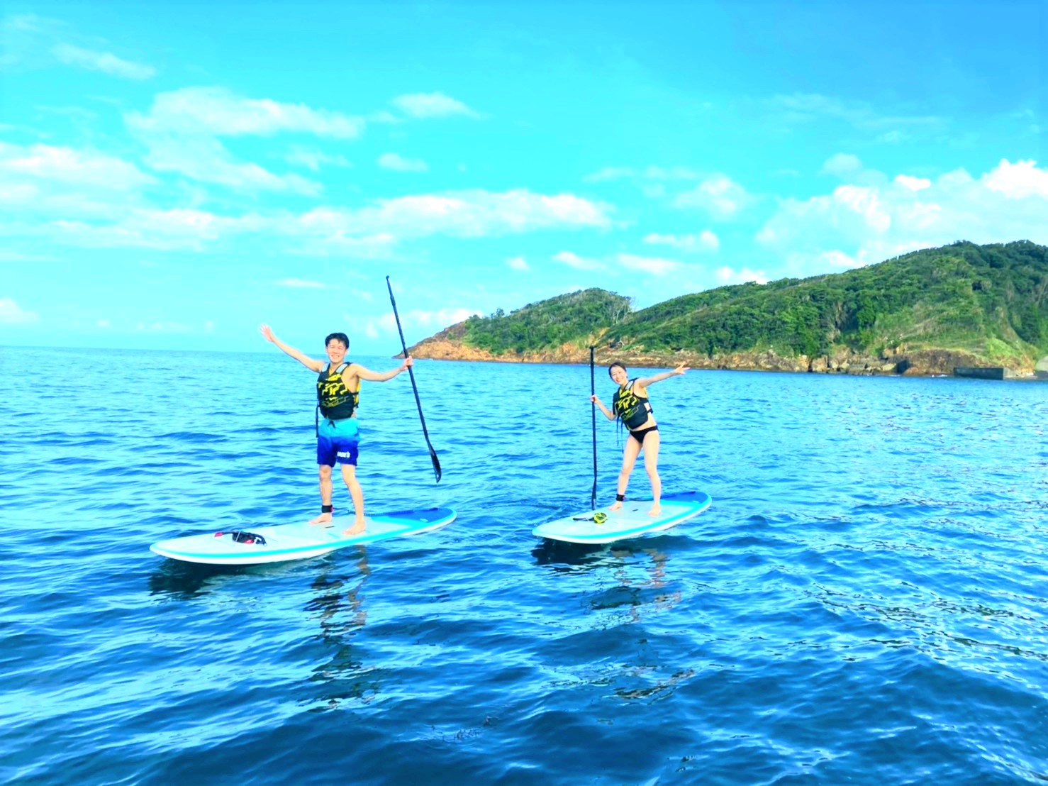 安定感のあるハードボード使用 穏やかな外浦海岸にて実施 ※天候により鍋田浜に変更する場合があります。